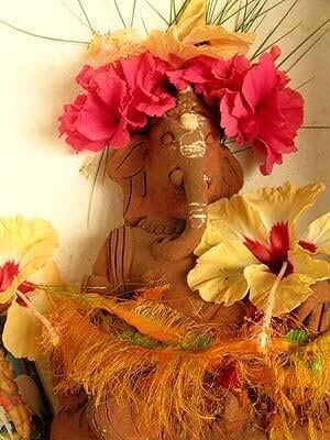 Rubbing oil or sandal paste on the idol or feeling the rice powder trickling down between your fingers as you draw the 'kolam'; the smell of the offering of incense and flowers; the braiding of Jasmine flowers for the hair while hearing and chanting mantras or prayers are all the sensory part of the daily rituals in India.
